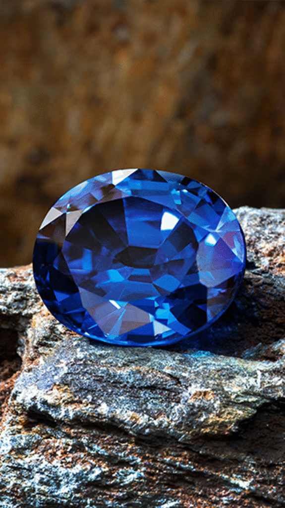 This natural Ceylon blue sapphire features a regal deep blue hue, symbolizing wisdom, loyalty, and spiritual clarity. Ethically sourced and unheated, it’s a timeless treasure.